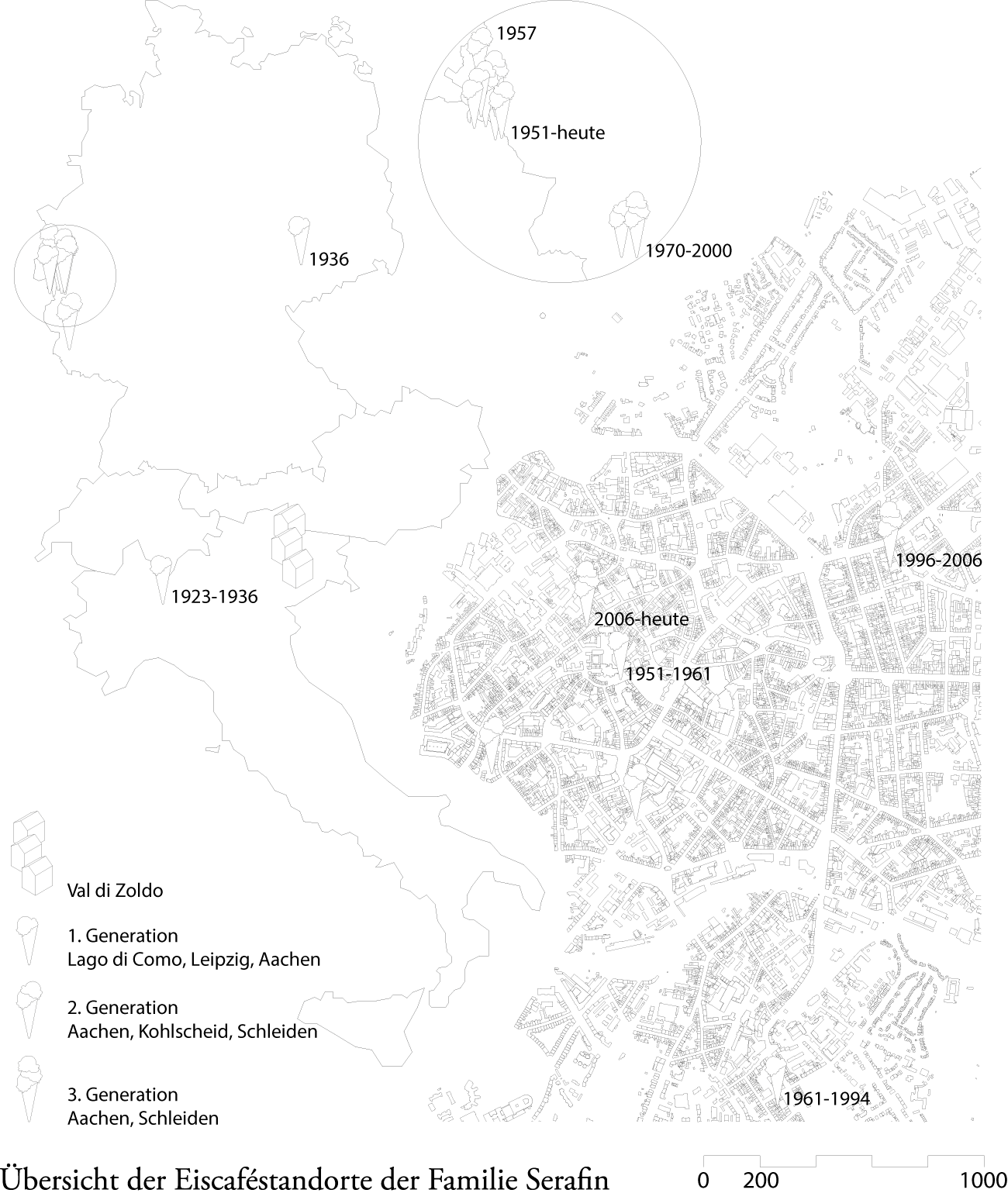 Viele der heute bestehenden Aachener Eiscafés wurden von der Familie Serafin gegründet und später an andere Eismacher weiterverkauft.